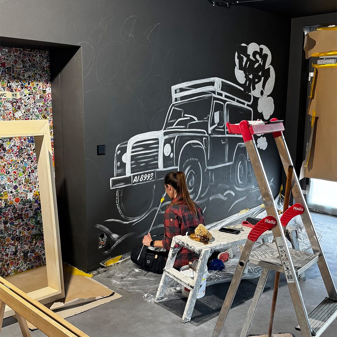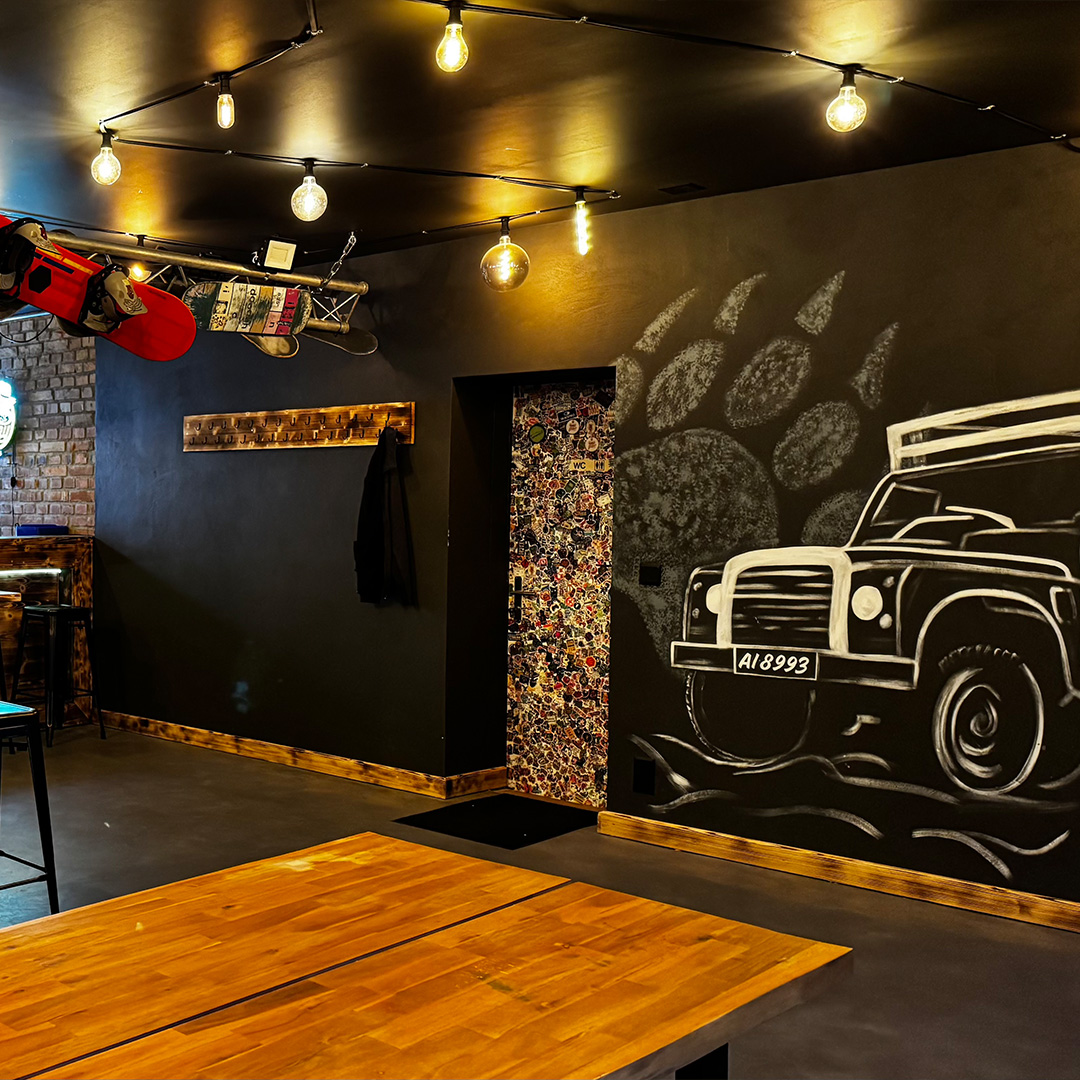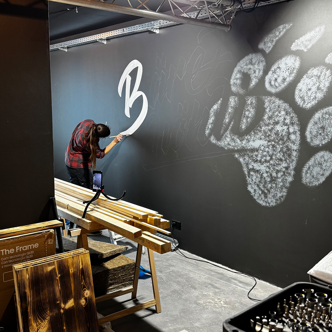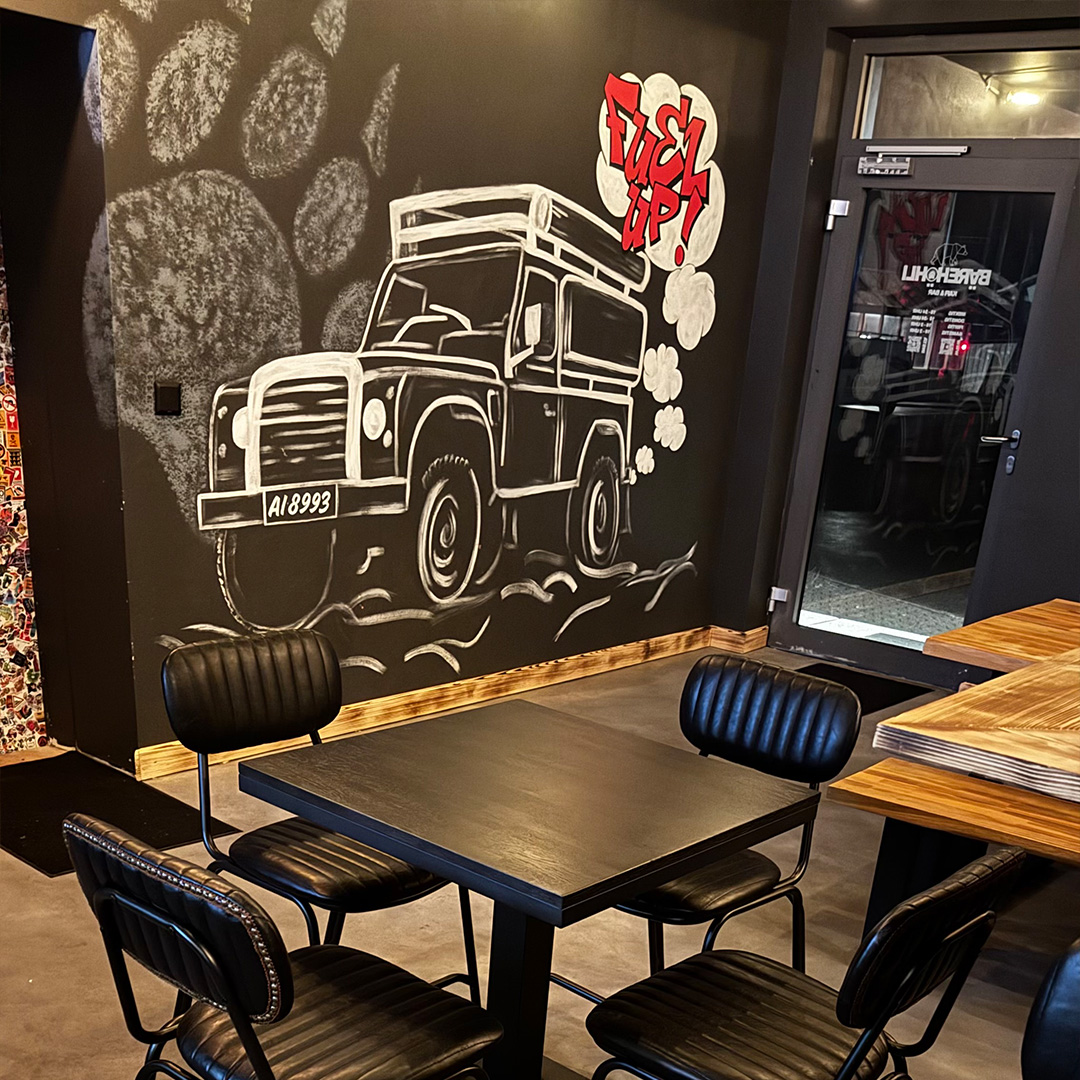 Schriftzug & Illustration: Jeder Bär braucht seine Höhle – so auch der Schwarzbär. Dieses Projekt umfasste zwei Wandgestaltungen mit Schrift und Illustration für die Bar Bärehöhli in Appenzell, bei denen ich grösstenteils freie Hand hatte.