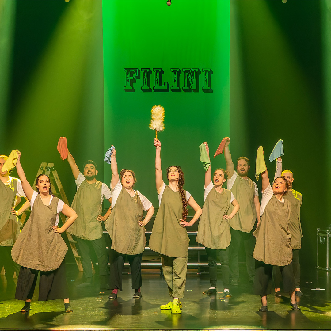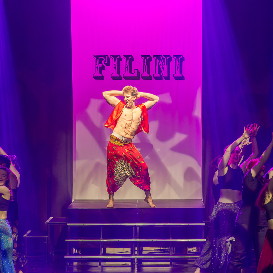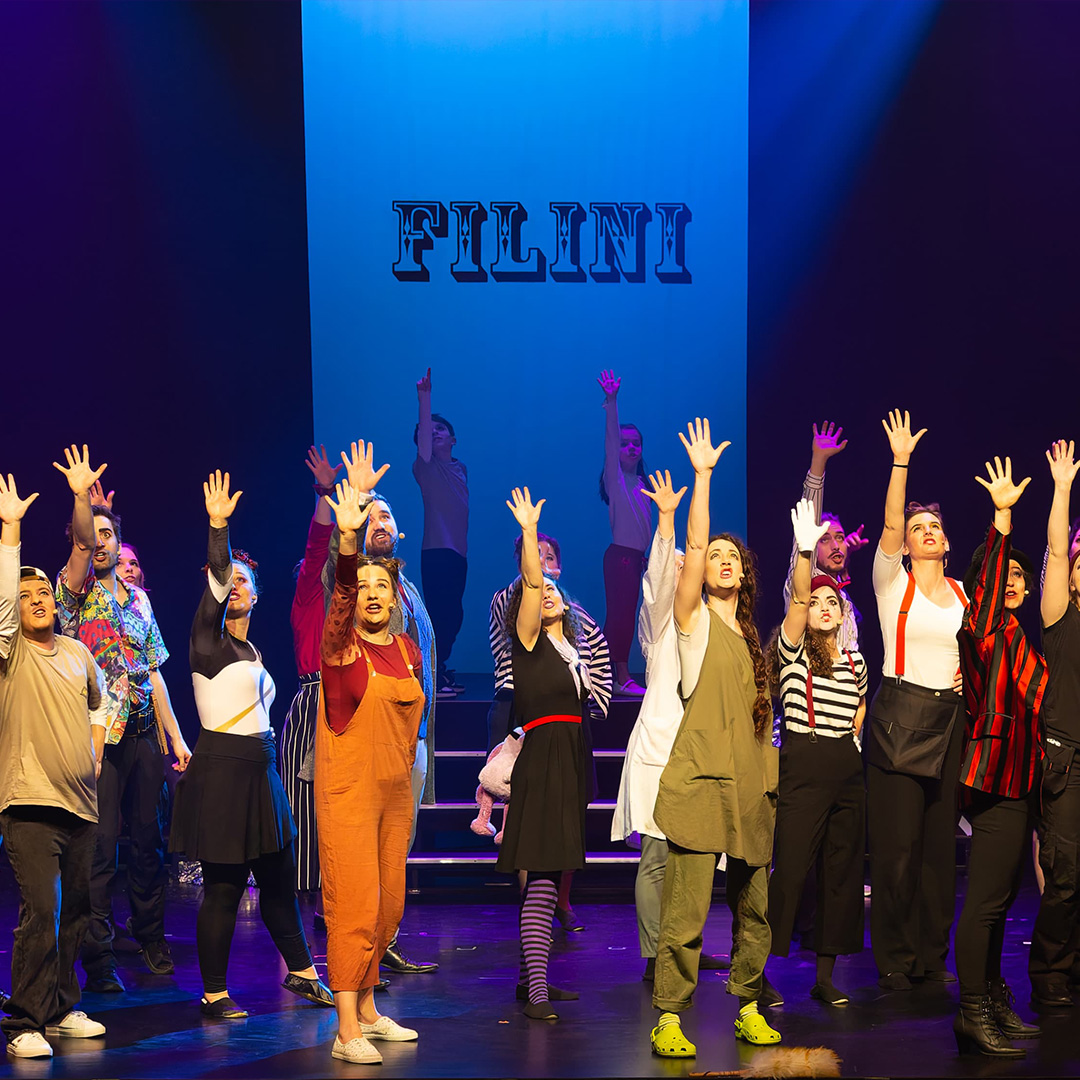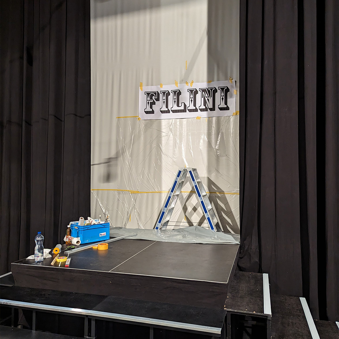 Filini: Der Zirkus Filini war Teil des Musicals Hyperloop des Musicalvereins Vorderste Reihe. Diese Beschriftung war die erste, die ich direkt vor Ort beim Kunden umsetzen durfte. Der Auftrag bestand darin, den Schriftzug in etwa drei Metern Höhe auf eine Leinwand zu malen, die leicht hin- und herschwang – eine spannende Herausforderung!